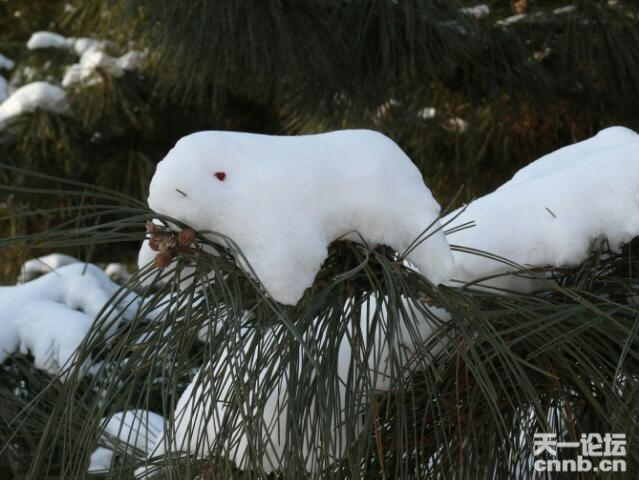 寧波手機(jī)報(bào)讀者139****8094:2010年末的等一場(chǎng)大雪過(guò)后,給人們的交通出行帶來(lái)了很多的不便,同時(shí)留下了美麗的雪景!“小白熊”爬上了枝頭!給我我們難得一見(jiàn)的視覺(jué)享受!哈哈!在寧波欣賞這樣美麗的雪景可得抓緊時(shí)間喲!