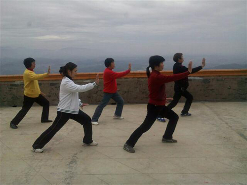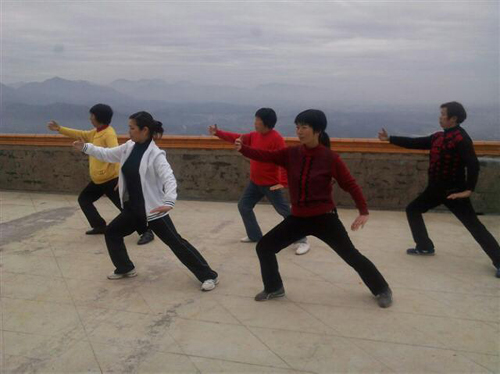 隨著生活水平的不斷提高,大山里的人們在閑暇時也戀上了太極,這是四明山水庫壩堤上一群山里的女人在打太極拳,哈哈!拳路還很專一呢!生命在于運動!山里的女人也很“給力”喲!