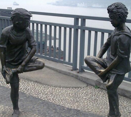 在嘉陵江邊鑄立著二個少年銅像,再現(xiàn)了漸行消去的“斗雞”游戲,讓到此一游的人們無一不留戀起兒時的童趣,回憶總是美好!