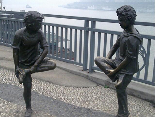 在嘉陵江邊鑄立著二個少年銅像,再現了漸行消去的“斗腿”游戲,讓到此一游的人們無一不留戀起兒時的童趣,回憶總是美好!