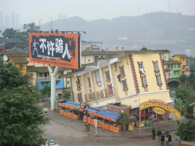 手機報讀者139****8094山城重慶,嘉陵江邊的洋人街有一幢獨特的“斜屋”!讓初游此地的人們常常會上這所謂的“樓歪歪”的當!時不時會虛驚一場!而樓前“不許騙人”的廣告更是實話實說:樓歪歪就是斜屋,斜屋就是樓歪歪!哈哈!確實“給力”!