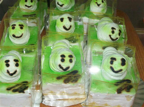 一商家很搞怪,蛋糕做成了“青菜蟲”形狀,哈哈!商家的“創(chuàng)意”很“給力”!可這樣的蛋糕有人敢吃嗎?