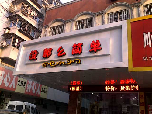 寧波手機報讀者139****8094:就是“沒那么簡單”!這是位于海曙孝聞街上一商家店鋪的店名。哈哈!原來是一家美發(fā)廳,這店名取得還真是沒那么簡單呢!辛卯年伊始,“雷事”還真多喲!