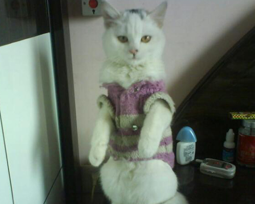 朋友家的一只貓瞇“小姐”很有靈性,每當(dāng)有客來訪時貓瞇“小姐”會突然在你面前站立秀一秀身姿!很可愛!特“給力”!動物是我們?nèi)祟惖呐笥,人類是動物信賴的伙伴?/font>