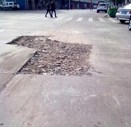 寧波手機(jī)報(bào)讀者152****3723:在寧波市鄞州區(qū)鄞江鎮(zhèn)車站路邊上拍的!這是一條商業(yè)街,此地凹凸不平,附近又沒有指示牌,安全措施不到位?爝^年了,車輛行人注意交通安全!也希望有關(guān)部門能夠趕緊處理一下,預(yù)防發(fā)生交通事故!