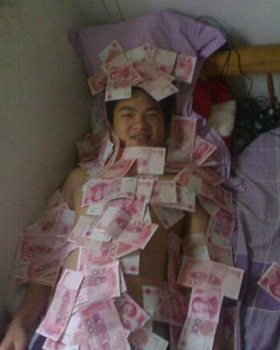 又發(fā)獎金了吧!哈哈!這小子蓋的不是錢!也不是給力!是寂寞吧!