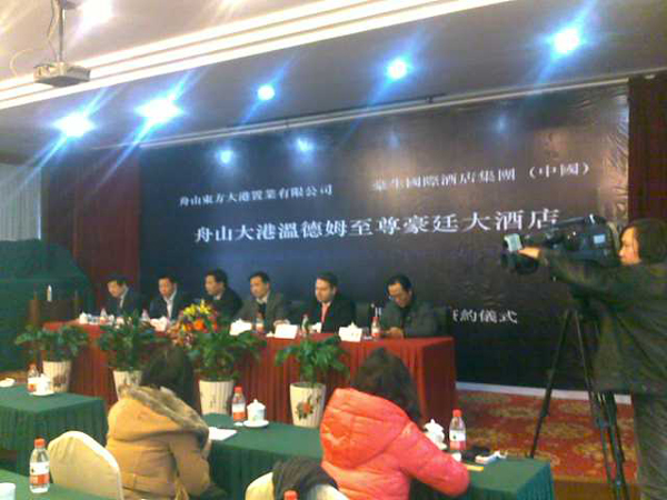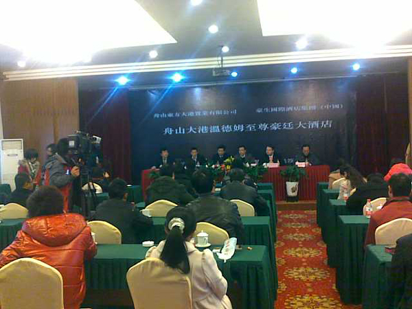 2011年1月20日下午2點半,美國溫德姆至尊豪廷酒店與東方大港(寧波)置業(yè)有限公司在沈家門華僑大酒店舉行了簽約儀式!至此白金五星酒店的進駐簽約改寫了舟山無五星酒店的歷史!