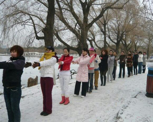 中國(guó)寧波網(wǎng)手機(jī)記者139****8094:19號(hào)公司部門(mén)在四明山年會(huì),午飯后美女們?cè)谒拿骱呇┲芯毱鹆髓べぃ」!怕冷就不是美女!冬練三九,雪中瑜伽很“給力”!