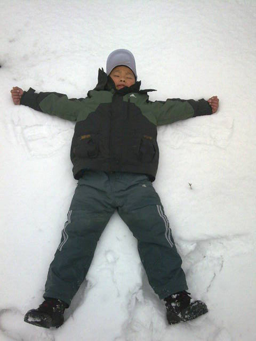 前幾天下雪,小孩往地上一躺,哇!好一個“大”字呦。。