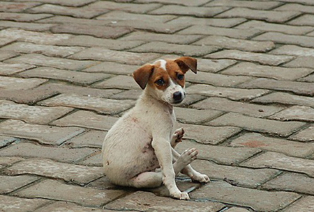 這只狗狗的坐姿有點獨特