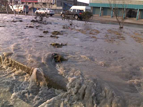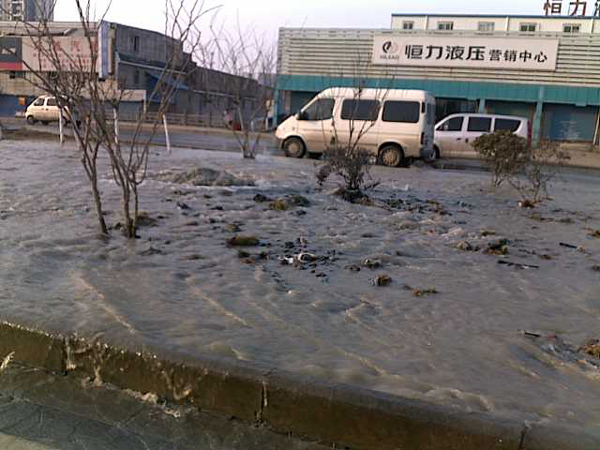 昨天下午三點半世紀(jì)大道東江南路口花壇水管爆裂,水漫金山,對面加油站進(jìn)水,現(xiàn)正在搶修中……