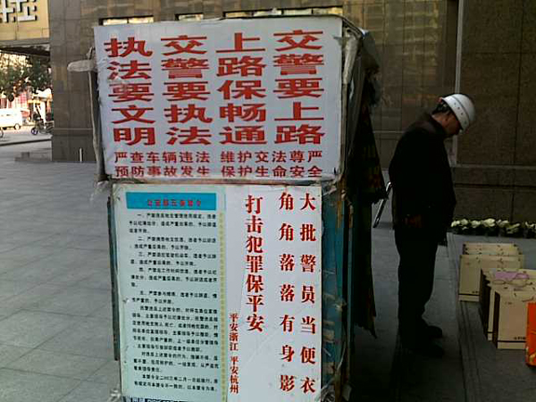 中國寧波網(wǎng)手機記者139****8094:杭州的機動三輪車打著“交警要上路,上路保暢通!交警要執(zhí)法,執(zhí)法要文明!”的廣告!穿行在都市的大街小巷暢通無阻!很是“給力”……
