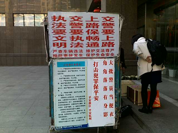 杭州的機動三輪車打著“交警要上路,上路保暢通!交警要執(zhí)法,執(zhí)法要文明!”的廣告!穿行在都市的大街小巷暢通無阻!很是“給力”……