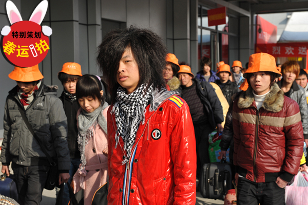中國(guó)寧波網(wǎng)手機(jī)記者159****6838:今天下午抓拍于火車(chē)東站,來(lái)看看民工版的“犀利哥”,看看哪個(gè)哥更潮呢?哈哈