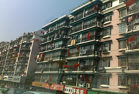 杭州德勝路一小區(qū)家家紅旗飄飄