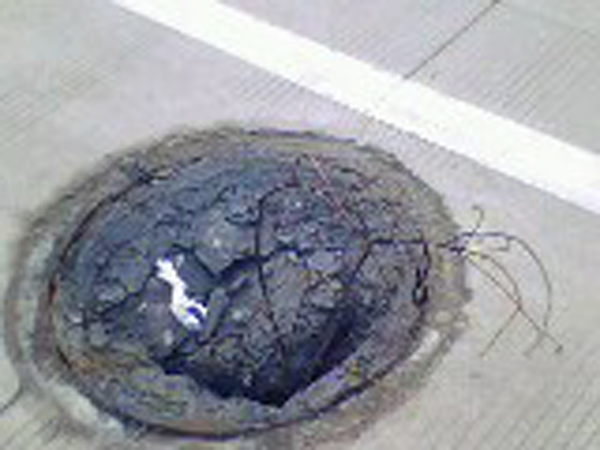 中國寧波網(wǎng)手機(jī)記者187****5392:昨天晚上我在匯盛路下班時(shí)不小心滑倒了,白天一看原來是個(gè)下水道…看這個(gè)窨井蓋都碎成這樣了還在使用,晚上騎車的人可要當(dāng)心了…