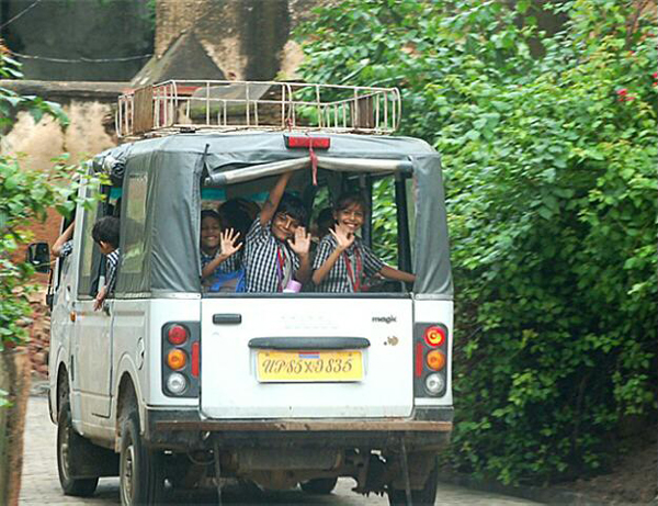 印度接送學生的“大蓬車”