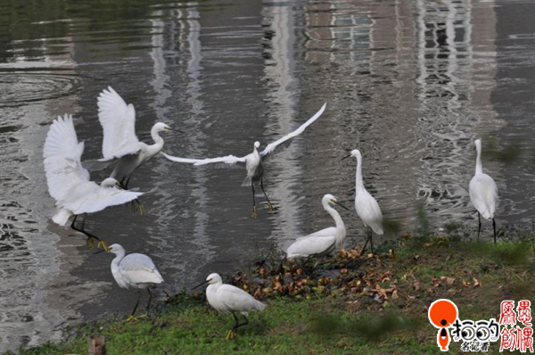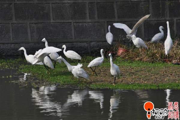不知哪年開(kāi)始,從共青路至海曙公園的北斗河里,生活著一群可愛(ài)誘人的越冬白鷺。前攝。