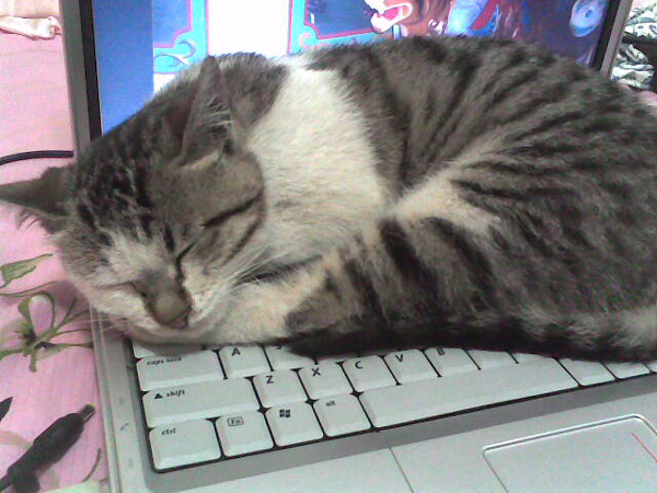 中國(guó)寧波網(wǎng)手機(jī)記者134****2196:我有一只特愛(ài)睡懶覺(jué)的懶貓貓,無(wú)論在什么地方都能睡著,這不還爬到我的筆記本本上睡去了因?yàn)槟沁有點(diǎn)熱度,我的天!