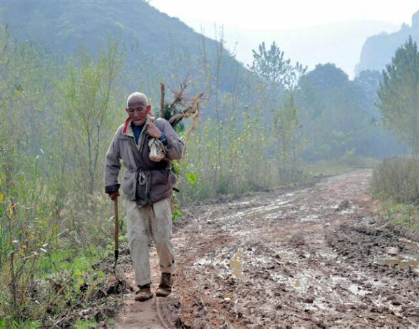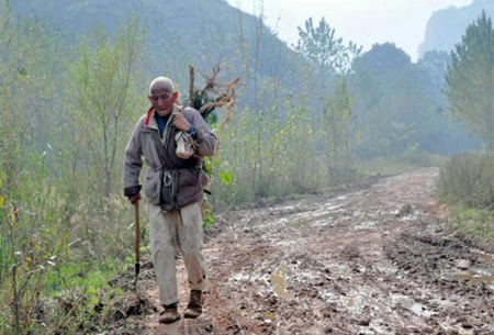 老人背著的不是柴,是……