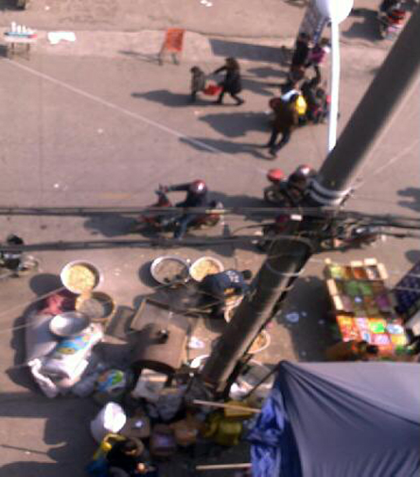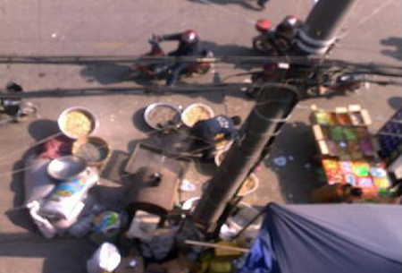 這是在寧波市姜山鎮(zhèn)菜場拍的,在電線桿旁烤瓜子存在著很大的安全隱患!萬一電線老化,漏電著火怎么辦?
