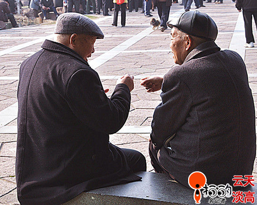 正月初二兩位老人在中山公園拉家常,其樂融融。