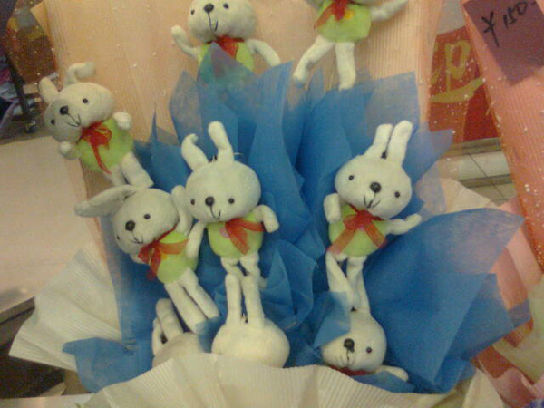 中國寧波網(wǎng)手機(jī)記者158****8581:情人節(jié)的花是越來越有個(gè)性了,看上面有很多小白兔,漂亮吧!送這樣的禮物給女友一定很開心哦!情人節(jié)的花真是一年比一年給力!