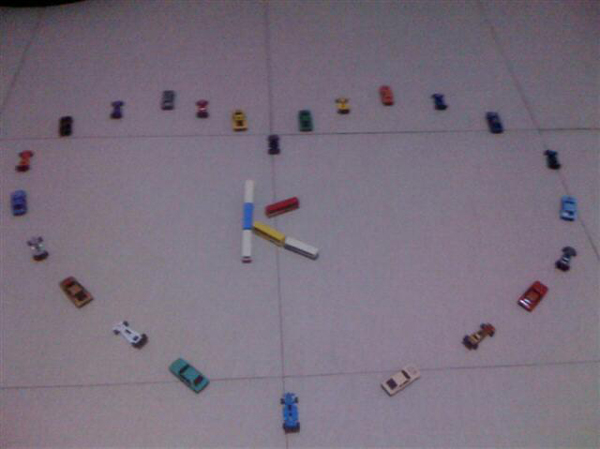 中國寧波網(wǎng)手機(jī)記者139****8094:今天中午公司的美媚們用30輛卡通小汽車在地上擺放了一顆心型圖案,中間的一個k字就是有著一顆kid孩子一樣、不想長大的心的adult美媚們,哈哈!