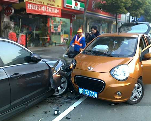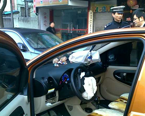 中國(guó)寧波網(wǎng)手機(jī)記者139****8094:昨天(2月24日)早晨6點(diǎn)半,在寧波大步街華必和餐館門口,一輛QQ小車“親吻”了停在路邊停車位上的大寶馬,“親吻”的力度還不小呢!寶馬車損失不小,估計(jì)沒有二三萬(wàn)是修不下來(lái)的,QQ小車前面的二只氣囊都打開了,可見速度不慢撞擊力度不小,雖然驚魂一刻,幸運(yùn)的是小伙子人未受傷。唉!錯(cuò)把油門當(dāng)剎車,希里糊涂真不該!行車安全要牢記,路邊停車也小心!!