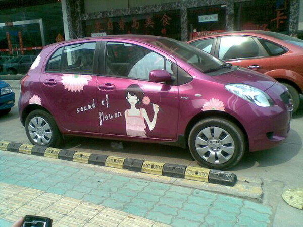 中國寧波網(wǎng)手機(jī)記者136****9468:昨天中午出去吃飯,看到路邊停著一輛手繪的動漫小轎車,給原本單調(diào)的車色增添了濃郁的浪漫氣息,好一道亮麗的城市流動風(fēng)景線!要是堵車,開車的朋友們興許還能用它來緩解疲勞呢!。!