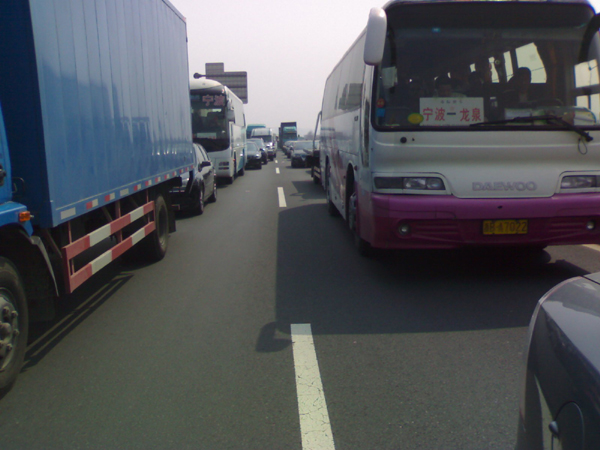 中國(guó)寧波網(wǎng)手機(jī)記者138****0218:上個(gè)星期六去東陽(yáng),在甬金高速嵊州至黃澤路段被堵了將近三小時(shí),悲劇啊。原因是黃澤段一輛危險(xiǎn)品車翻了 ,疏通的警力沒(méi)有很快到位,綿延十公里的車子在黃澤下高速還得排隊(duì)交費(fèi),造成又次堵?lián)。真是大悲劇?