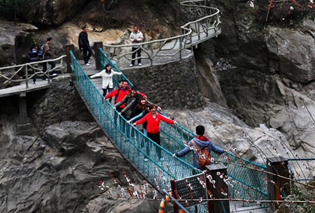 中國寧波網(wǎng)手機(jī)記者137****6468:今天是三八國際婦女節(jié),既是女人們的節(jié)日,也是紳士們表現(xiàn)的時(shí)機(jī)!今天單位的女同胞們?cè)趲孜粠浉绲膸ьI(lǐng)下,來到浙東大同峽谷,興奮地在鐵索橋上蕩起秋千!盡情享受節(jié)日的快樂!