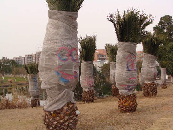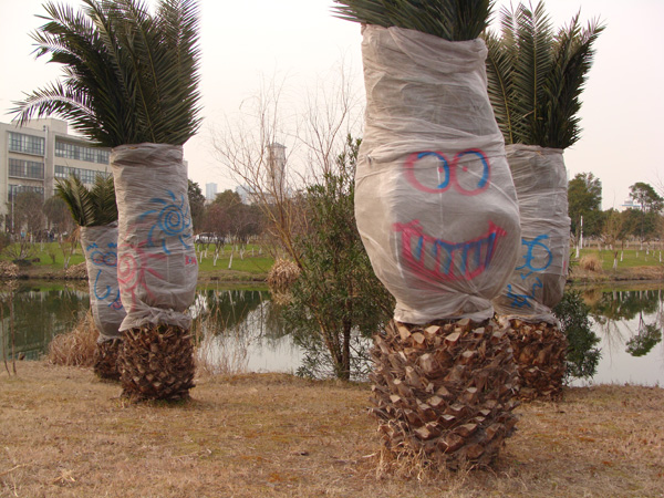 中國(guó)寧波網(wǎng)手機(jī)記者138****5186:拍攝于3月8日下午,諾丁漢大學(xué)校園內(nèi)。冬天的時(shí)候校園內(nèi)的樹(shù)要用塑料保護(hù)起來(lái),于是大學(xué)生們就搞了些噴繪來(lái)裝點(diǎn)!怎么樣,很搞笑也很有創(chuàng)意吧!。