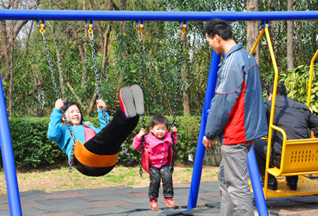 今日天氣睛朗,鄞州公園里春意盎然,老人們帶著幼童無心賞景,來到公園東北方向的兒童角玩耍?粗⒆觽兏吲d的樣子長輩們個個心頭樂滋滋的!