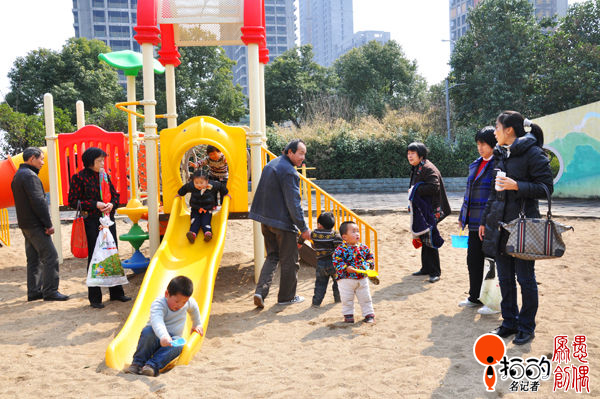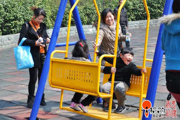 今日天氣睛朗,鄞州公園里春意盎然,老人們帶著幼童無心賞景,來到公園東北方向的兒童角玩耍?粗⒆觽兏吲d的樣子長輩們個個心頭樂滋滋的!