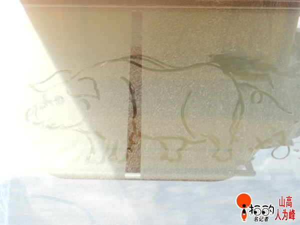 在寧波雅各爾體育場,一車窗玻璃上的“瘦肉精”豬豬!哈哈!不知道是哪位高手畫的,畫功不錯喲!
