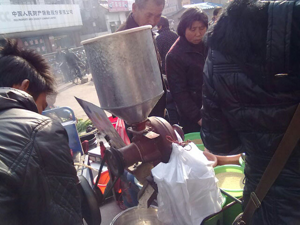 前幾天去菜市場買菜,見路口一拖拉機(jī)邊一大堆人圍觀,湊近一看,原來是在榨黑芝麻,黑芝麻對人有益而無害,男女老少皆可吃。哈哈!