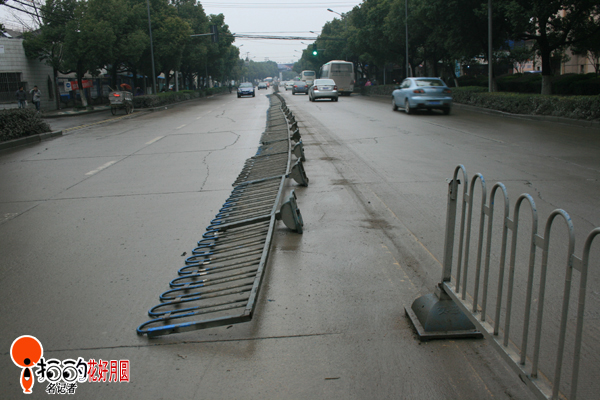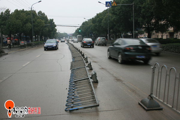 | 隔離欄被撞倒,危險! |