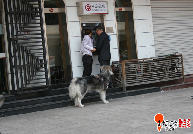 中午,在解放南路一只大狗狗守衛(wèi)在ATM取款機邊上,原來主人正在取錢,它忠誠地守衛(wèi)在邊上,瞧這個架勢,好像在說:“看誰敢來打劫!”