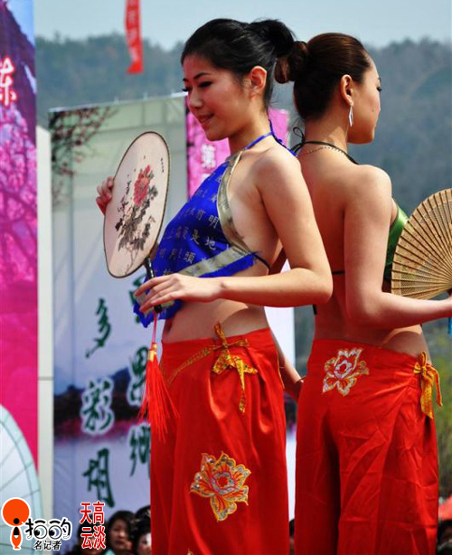 中國寧波網(wǎng)手機(jī)記者139**6595:“中國第四屆寧海東山桃花節(jié)”上周末在寧海胡陳開幕,開幕式上演出了很多精彩的歌舞節(jié)目,其中“胡陳囡”肚兜秀中美女可是多多哦!