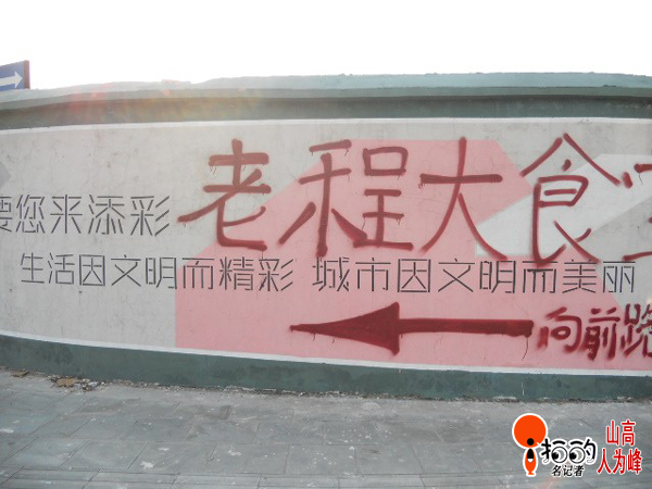 中國寧波網(wǎng)手機(jī)記者139****8094:在驚駕路銀晨國際東邊一圍墻上出現(xiàn)的文明宣傳標(biāo)語與不文明的廣告!老程是誰?老程可能就是老程大食堂的程老大吧!圍墻上自寫廣告當(dāng)指路標(biāo)!讀一讀圍墻上的文明標(biāo)語,再看一看老程的指路標(biāo),怎么看怎么不和諧,實(shí)在是很不“給力”。