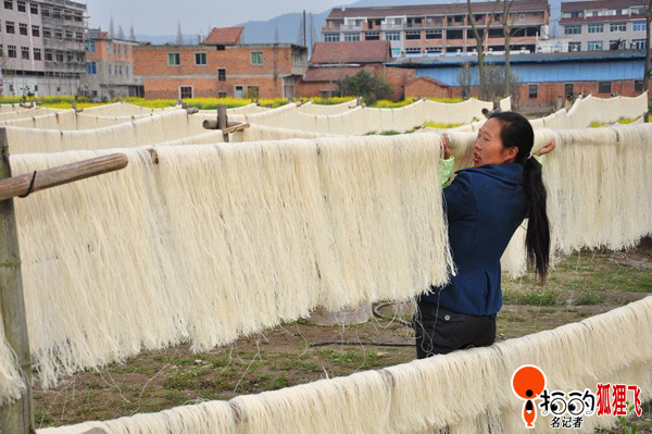 中國寧波網(wǎng)手機記者137****6468:我國名小吃素有“南粉北面”之傳說,在數(shù)千年來南方人慣有吃米粉傳統(tǒng)習(xí)俗。這是我們?nèi)ハ删拥囊粋山村拍的,村民們正忙著曬米粉!相信很多朋友都沒見過這場面吧!米粉好吃,制作過程可不簡單呦!
