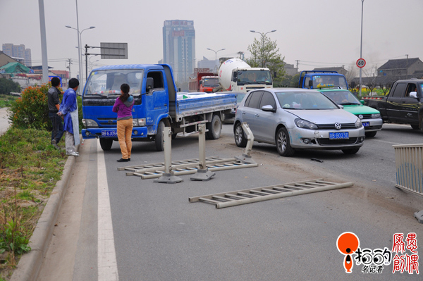 中國(guó)寧波網(wǎng)手機(jī)記者158****1750:桑塔納剎車不及時(shí)撞倒隔離欄、小躍進(jìn)避不及追尾險(xiǎn)上人行道。今日上午11時(shí)許,在環(huán)城南路(寧橫路南約200m處),一輛桑塔納轎車因沒把好方向盤、又因剎車不及時(shí)撞到了隔離欄,隨后跟上的躍進(jìn)小貨車因避讓不及險(xiǎn)些沖上人行道。