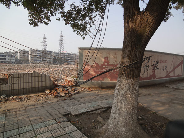 有的更好,直接就從下垂下在車行道上,在你的眼前晃來晃去。拆遷施工、街景整治、電線垂蕩,塞車連連,鄞奉路上這一路行來真是太給力了!