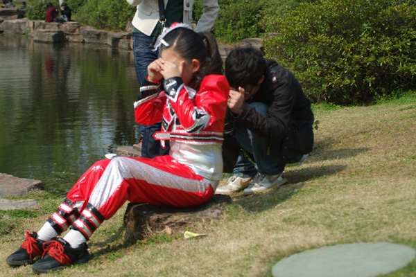中國(guó)寧波網(wǎng)手機(jī)記者135****7736:上周末,路過月湖時(shí)看見有一個(gè)長(zhǎng)得象阿爾法的漂亮小女孩,懷疑是阿爾法的“妹妹”。哈哈,原來他們是在拍mv!