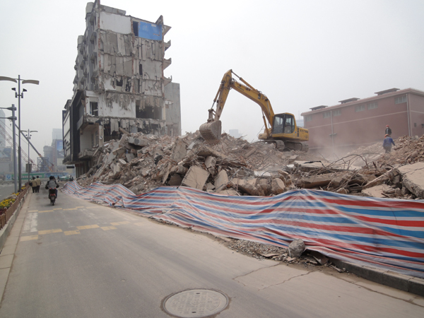 中國寧波網(wǎng)手機(jī)記者135****6815:在中山東路新江廈商城對面的拆遷工地上,廢墟如山,塵土彌漫,鏟車不停地運作著,而旁邊就是毫無遮擋窄窄的非機(jī)動車道,人車川流,往來不息。經(jīng)過這里時,大家都會抬眼一望后趕緊逃離,我想,大概是這樣“坦白”的拆遷讓大家實在有點提心吊膽吧!