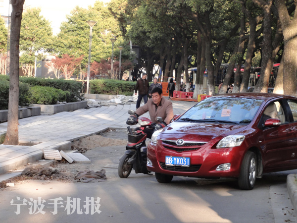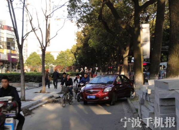 中國寧波網(wǎng)手機(jī)記者135****6815:窄窄的非機(jī)動(dòng)車道,街景還在整治中。本就比較擁堵路面,一位帥哥駕著一輛紅色豐田硬要擠進(jìn)來爭(zhēng)路,機(jī)動(dòng)車、非機(jī)動(dòng)車,本來就各有各路,你說說,你這是擠個(gè)什么勁,引來過往路人無數(shù)鄙視的注目,值得嗎?4月13日下午5點(diǎn)多鐘,攝于靈橋路近鄞奉路交叉口(中信銀行前)。