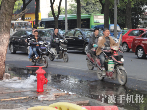 中國(guó)寧波網(wǎng)手機(jī)記者139****8094:水是生命之源,是寶貴的,也是緊缺的,但就是這寶貴又緊缺的源泉,卻被這樣白白的橫流而去,不僅浪費(fèi),而且把柏油路變成了水油路,給行人帶來(lái)了極大的不便?粗\頭上放著的扳手,很明晰是人為的,想喝問(wèn)一聲:為什么要這樣。!4月14日下午5時(shí)左右攝于靈橋路近鎮(zhèn)明路口! !