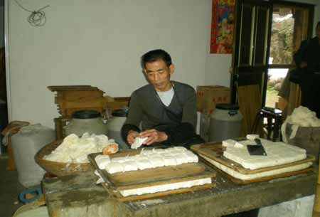 前童有三寶:老豆腐、空心豆腐和香干。這家豆腐店老板的手工制作豆腐很有名,晚點(diǎn)去就會(huì)買不到。