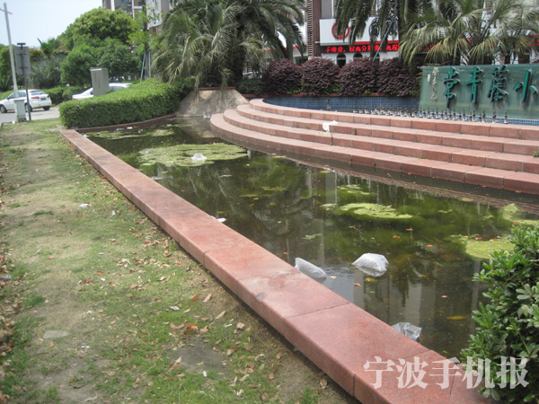 中國寧波網(wǎng)手機(jī)記者136****1631:江東常青藤小區(qū)大門口前的景觀水池,因長期缺少打理,池內(nèi)漂浮著許多白色垃圾,池水也已經(jīng)變得很臟,長滿了水藻,十分不美觀。這個景觀水池算是常青藤小區(qū)的門面了,如此臟亂的門面對小區(qū)造成影響可是不小,希望相關(guān)部門能及時清理,還小區(qū)一個干凈美麗的門面!